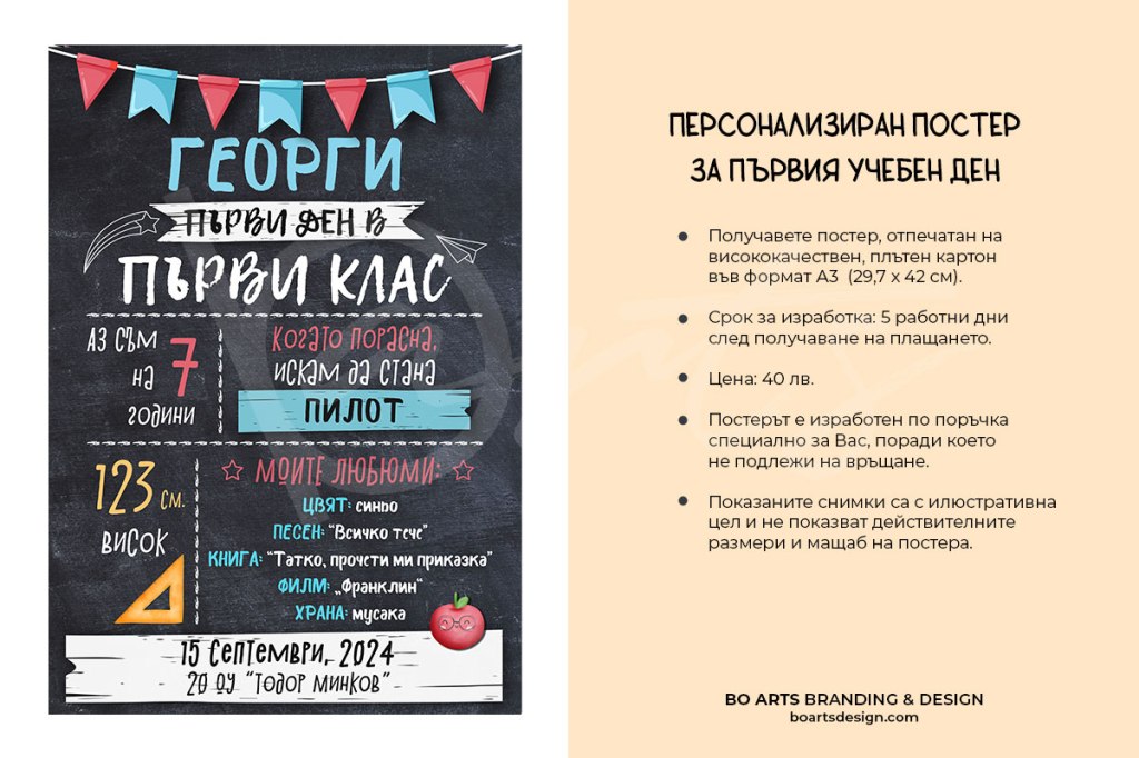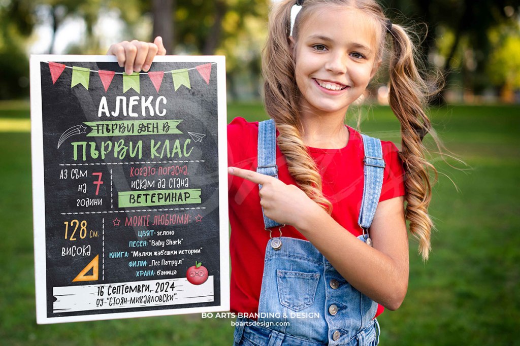 Създайте незабравими спомени и внесете радост в първия учебен ден на вашия малък ученик с нашата персонализирана табела!