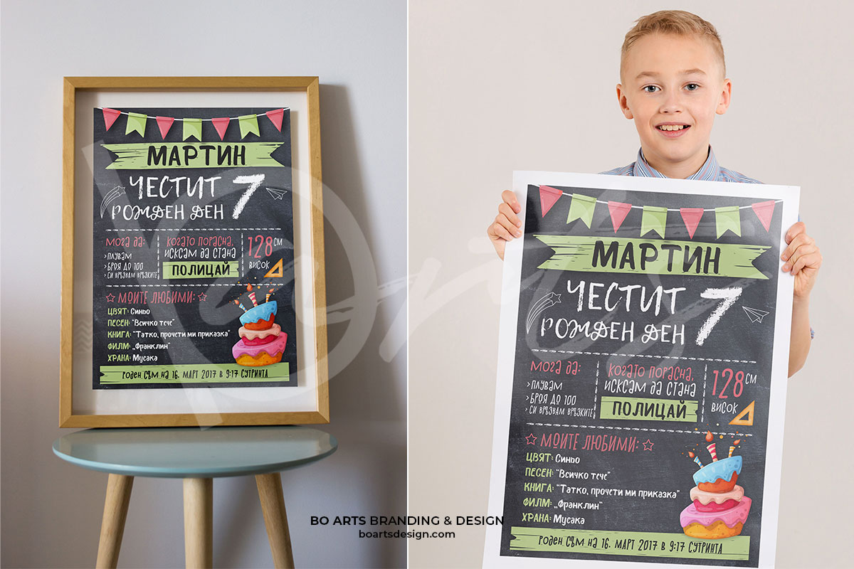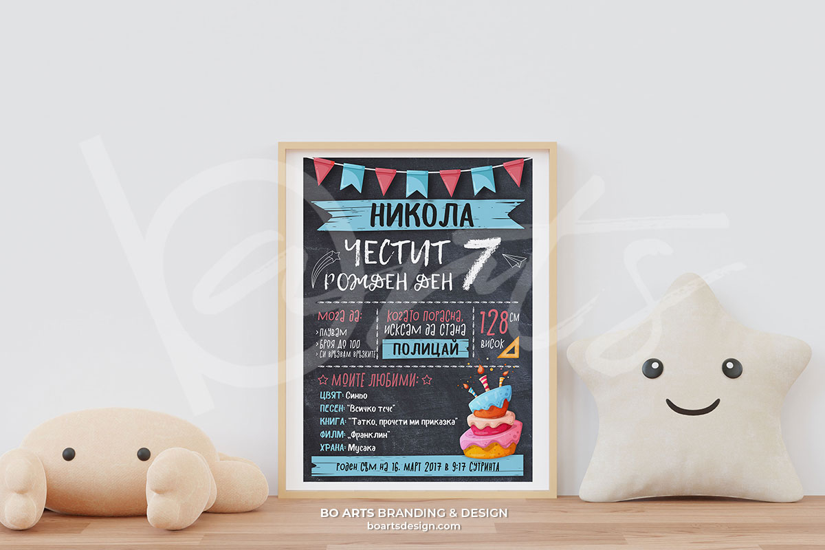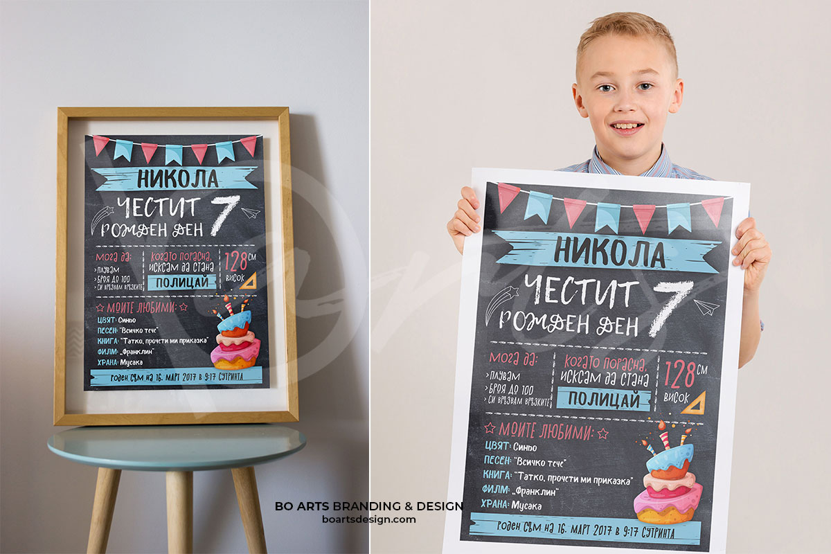 Тази страница е прадназначена за клиенти, закупили ваучери за персонализиран постер за детски рожден ден от Грабо. Моля попълнете внимателно всички полета с информацията, която ще бъде отпечатана върху постера.